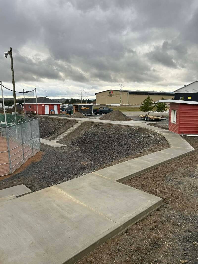 Trottoir et marches donnant accès à un terrain de balle municipal.